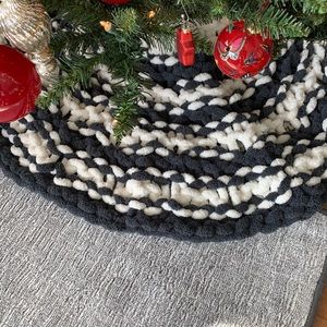 Super chic cool Christmas tree skirt. 45 inches Diameter. Charcoal and ivory stripe. We didn’t even get to use it because it arrived too late! I just put it in to photograph it.