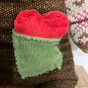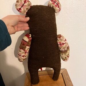 Handmade up cycled sweater bear pillow friend with heart in the pocket