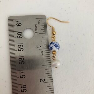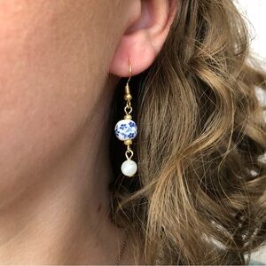 Handmade vintage inspired floral porcelain chinoiserie dangle earrings