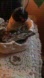 Handmade vintage small tablecloth with tiger eye,white jasper & coral stones