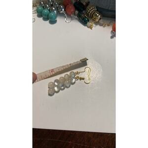 Gorgeous clear white bead earrings gold tone new wiring and Upcycled beads in good condition great for affordable bridal school work going out parties holidays vacation boho retro twee fairy preppy minimalist streetwear Ravi Star Jewelry Co