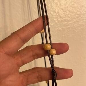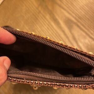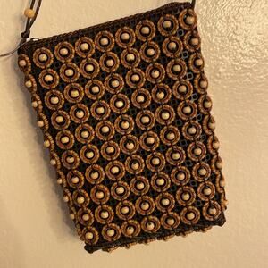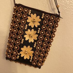 Purchased this on vacation never used it, wood flowers and beads sewn into it C