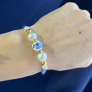 Handmade by me! This bracelet is adjustable but I can make it tie on if you prefer, for other colors/styles I encourage you to check the other bracelets in my shop! Any questions just ask. This bracelet has 1 ceramic flower bead, 4 faux pearls and 4 gold beads.