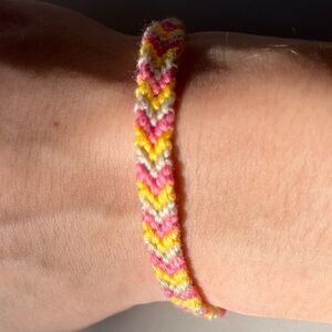 Handmade woven dainty chevron/arrow bracelet pink orange beige