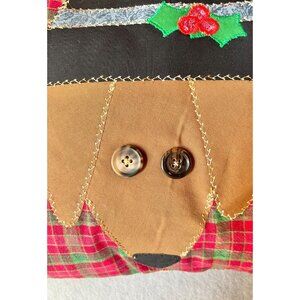 Handmade12x12 Dachshund Pillow Button Eyes Holly On Hat Plaid Front & Cream Back