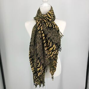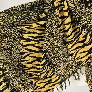 Curious Designs hand made animal print soft rayon fringe end scarf. 100% rayon.