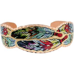 Handmade Boho Native American Cuff Bracelet, Colorful Feather Copper Bracelet,