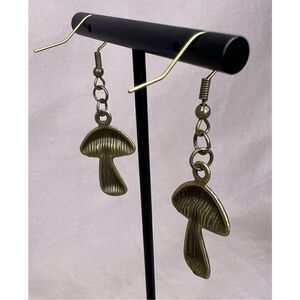 Handmade Bronze Dangly Mushroom Earrings