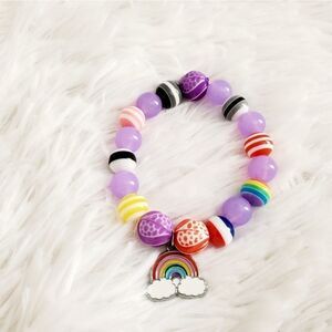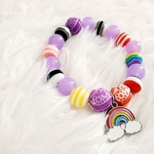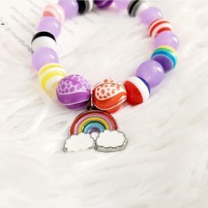This adorable Beaded Bracelet is full of color and is perfect for your little girl. The bracelet Is made with Acrylic beads and an enamel stainless steel rainbow charm. This would be the perfect gift for any little girl who loves bracelets. The bracelet comes in a white box which makes it easy for gift giving. There are 4 available if you are interested in purchasing more than one.