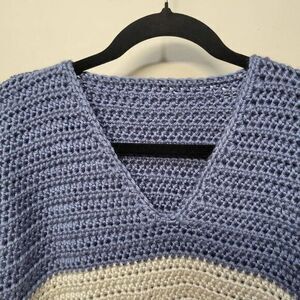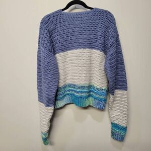 Handmade Chunky Knitted Sweater Size XL Blue Colorblock Oversized V Neck Slouchy