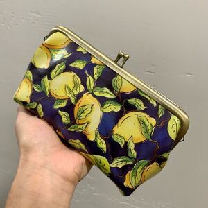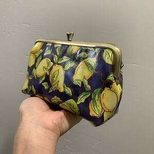 Handmade Cowhide Lemon Print Kisslock Small Clutch/Cosmetic bag/Phone Case
