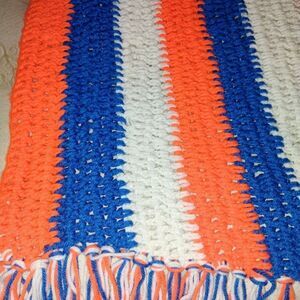 Handmade Crochet Cozy Striped Blue and Orange Throw Blanket