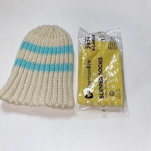 Handmade Crochet Hat One Size And Premier Pro Slipper Socks Size XL