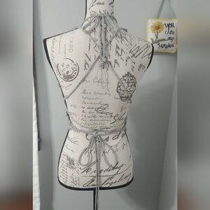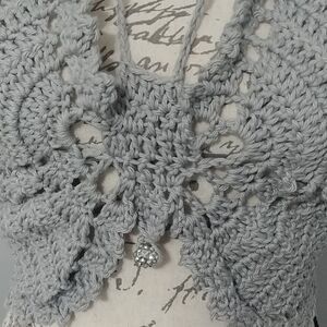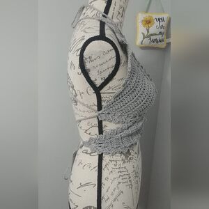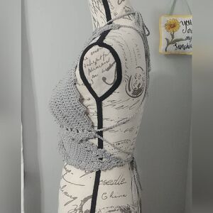 Handmade Crocheted Butterfly Festival Crop Top 100% Cotton Grey w beads 34-36B-C
