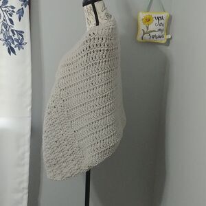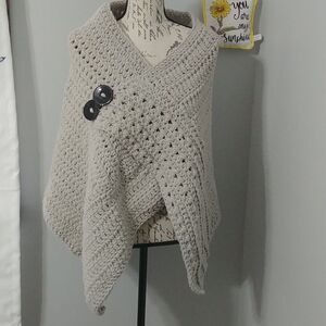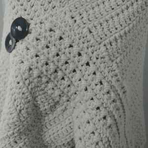 Handmade Crocheted Heavyweight Left Handed Light Grey Shawl/Poncho
