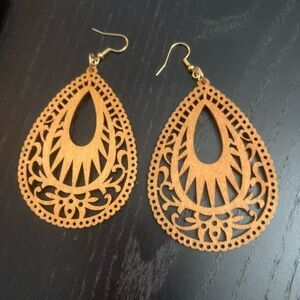Ladies super cute natural wood laser cut handmade earrings. New with tags. Made from hypoallergenic nickel and lead free metal. Lightweight. Approximately 1.5" long.