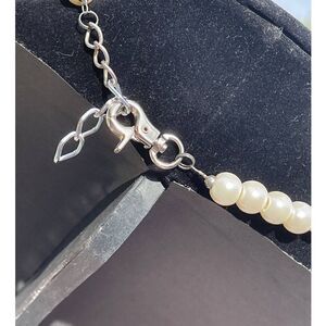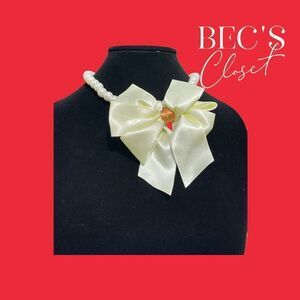 I had made this as a test run to see how it will do for making as a hand made piece. Custom cream and tan bow on a string of medium cream beads.