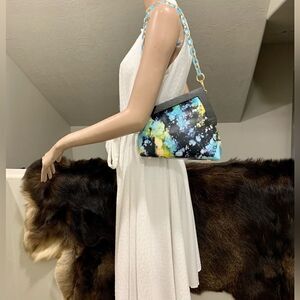Handmade Genuine Premium Leather Tie-dye Printed Wooden Frame Bag with 2 Chains