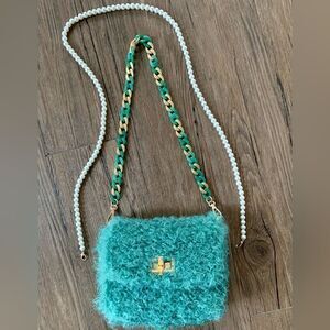 Brand new. This cute purse is handmade from genuine curly shearling, Includes a chains style.  Spacious enough for your phone, sunglasses, cosmetics, wallet and other items. Use in multiple ways, hand carry, wear as a shoulder bag or crossbody. This cute purse is perfect for any event, evening out or a gift for an important someone.