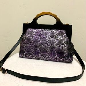 Handmade Genuine Embossed Leather Gradient Metallic Wooden Frame Bag/Crossbody