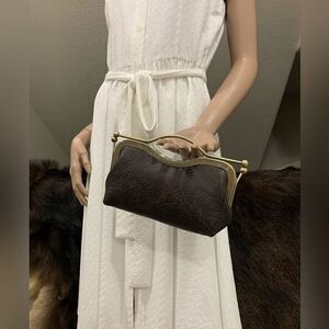 Handmade Genuine Embossed Leather Kisslock Clutch/Shoulder bag/Crossbody