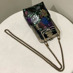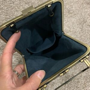 Limited edition! Vintage Style. Chic design, uniquely beautiful. It's completely hand sewn and crafted. Made from genuine embossed rose cowhide with chic metal frame. Use in multiple ways, can be hand carried or with chains for crossbody. Can hold phone, small wallet, sunglasses, lipstick, cards, coins. Can be worn with dresses and jeans, casual wear.