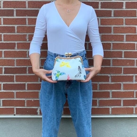 Handmade Genuine Leather Butterfly Embossed Kisslock Clutch with Small Purse Set