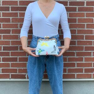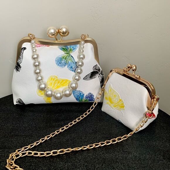 This exquisite & elegant clutch and small purse, they are handmade from relief embossed butterfly. This bag set with 2 chain styles, they can be swapped for different looks, use in multiple ways, hand carry, wear as a shoulder bag or crossbody.