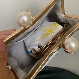 Handmade Genuine Leather Butterfly Embossed Kisslock Clutch with Small Purse Set