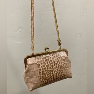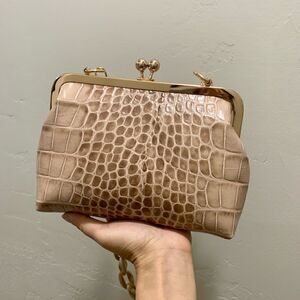 Handmade Genuine Leather Croc-Embossed Kisslock Clutch/Shoulder bag/Crossbody