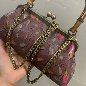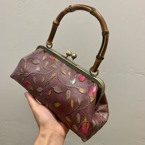 Chic design, vintage style. Handmade from genuine embossed leather with real bamboo handle. Spacious enough for your phone, wallet, cosmetics, compact umbrella, credit cards, keys & other items.Accessorize as a day or evening bag, or a gift for an important someone.