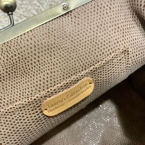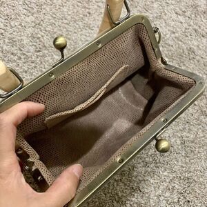 Brand new, vintage style. Handmade from genuine embossed cowhide with kisslock closure metal frame and Wooden handle. Spacious enough your phone, sunglasses, wallet, compact umbrella, cosmetics & other items.