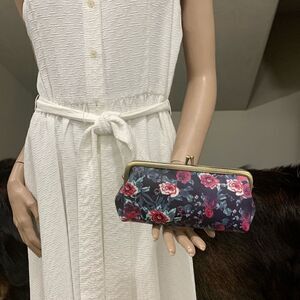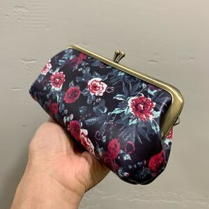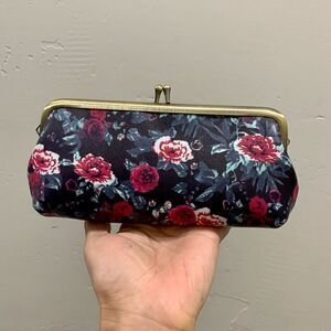 Handmade Genuine Leather Floral Print Kisslock Clutch/Cosmetic Case/Glasses case