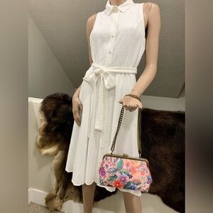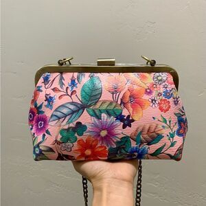 Handmade Genuine Leather Floral Printed Push-lock Clutch/Shoulder Bag/Crossbody