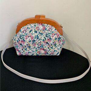 Handmade Genuine Leather Floral Printed Round Wooden Frame Clutch/CrossBody