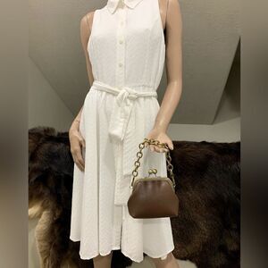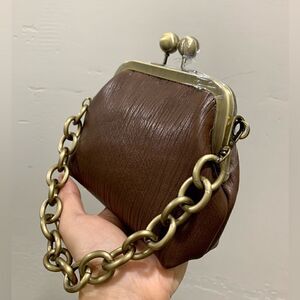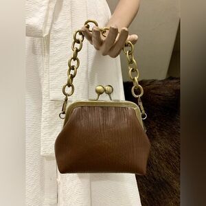 Brand new. Vintage style, great quality. Handmade from Italian genuine embossed leather with metal frame. Can hold cosmetics, keys, bank cards, coins. With 2 chains can be used as a wristlet, shoulder bag or crossbody. This cute small clutch is perfect for any event, evening out or a gift for an important someone.