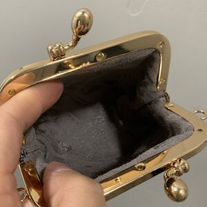 with kiss lock closure, can hold cosmetics, keys, bank