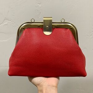 Brand new. Chic design, retro fashion style. Handmade from genuine cowhide pebble grain leather, with unique rivet metal frame.
