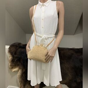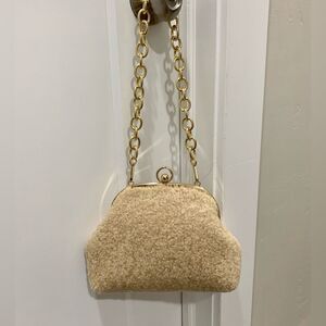 Brand new. Vintage style. Handmade from genuine premium shearling, chic round metal frame with kiss lock closure. Spacious enough for your phones, wallet, sunglasses, cosmetics, and other items. Includes 2 chain styles, use in multiple ways, hand carry, wear as a shoulder bag or crossbody. Accessorize as a day or evening bag, or a gift for an important someone.