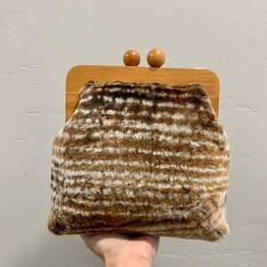One of a kind! Retro fashion style. Handmade from genuine shearling with natural wooden frame. Spacious enough for your phones, wallet, cosmetics, credit cards, keys & other items that you may need.
