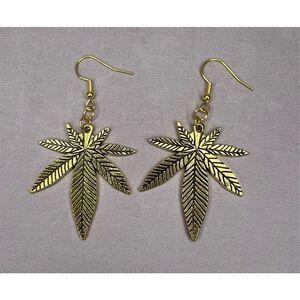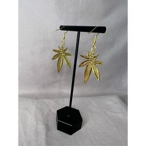 Handmade Gold Large Pot Leaf Dangly Earrings With Black Detailing