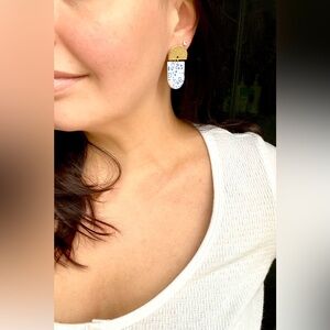 ✨Handmade/Handcrafted Polymer Clay Earrings Blue and White with Gold✨