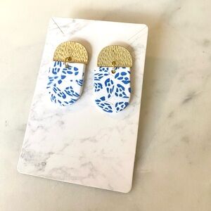 ✨Handmade/Handcrafted Polymer Clay Earrings Blue and White with Gold✨
