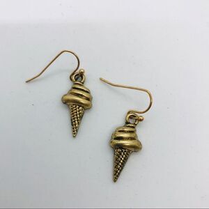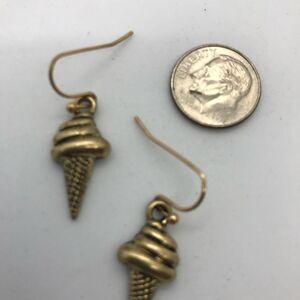 Handmade Ice Cream Cone Dangling Earrings Drops NWT Antique Gold