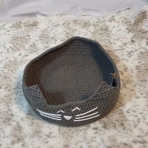 This New homemade gray knit Kitty Cat napping bed measures approximately: 15" x 4-1/2". All offers are welcome.