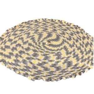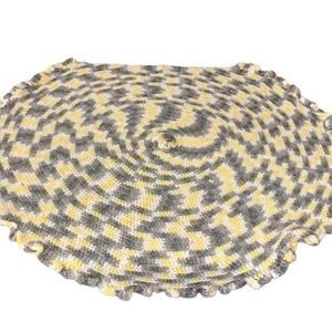 Handmade Knitted Crocheted Grey Yellow White Round lap baby Blanket