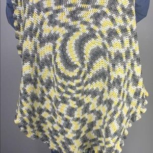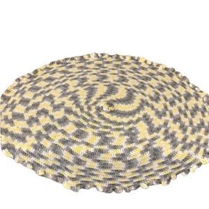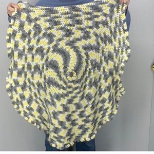 Knitted Crocheted Handmade Grey Yellow and White Round Blanket