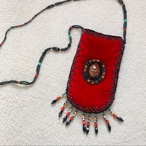 Handmade LITTLE RED COIN PURSE with beautiful beadwork NWOT