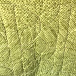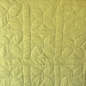 Back side is a matching small black on green geometric print and highlights the beautiful quilting pattern itself. Perfect as a throw or use as a gorgeous runner on a bed.