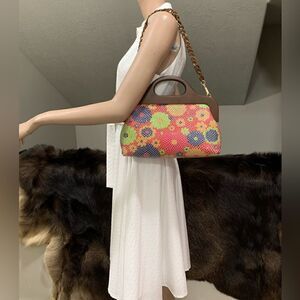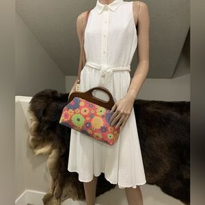 Brand new, Great quality. Handmade genuine embossed floral-patterned patent leather bag, can be used as a cross body bag, shoulder bag or clutch. This wooden frame bag holds a lot, spacious enough for your phone, large wallet, cosmetics, books, compact umbrella, & other items that you may need.